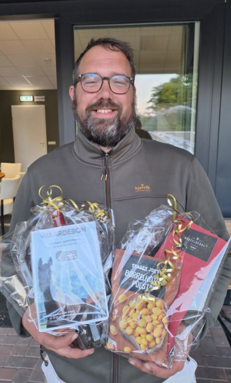Wat een heerlijke, gezellige dressuuravond was het op de vrijdag, met prachtig weer en leuke combinaties. Rudi Hietbrink nam tweemaal een 1e prijs mee naar huis. In de eerste proef werd Annabeth Reesin 2e en Mieke Puyman 3e; zie hier complete uitslag. De prijzen werden aangeboden door een aantal sponsors: een les van Ineke Jansen, een bon en bier van Het Proeflokaal, wijn van Wijnhoeve Kunneman en worst van De Hoeve.