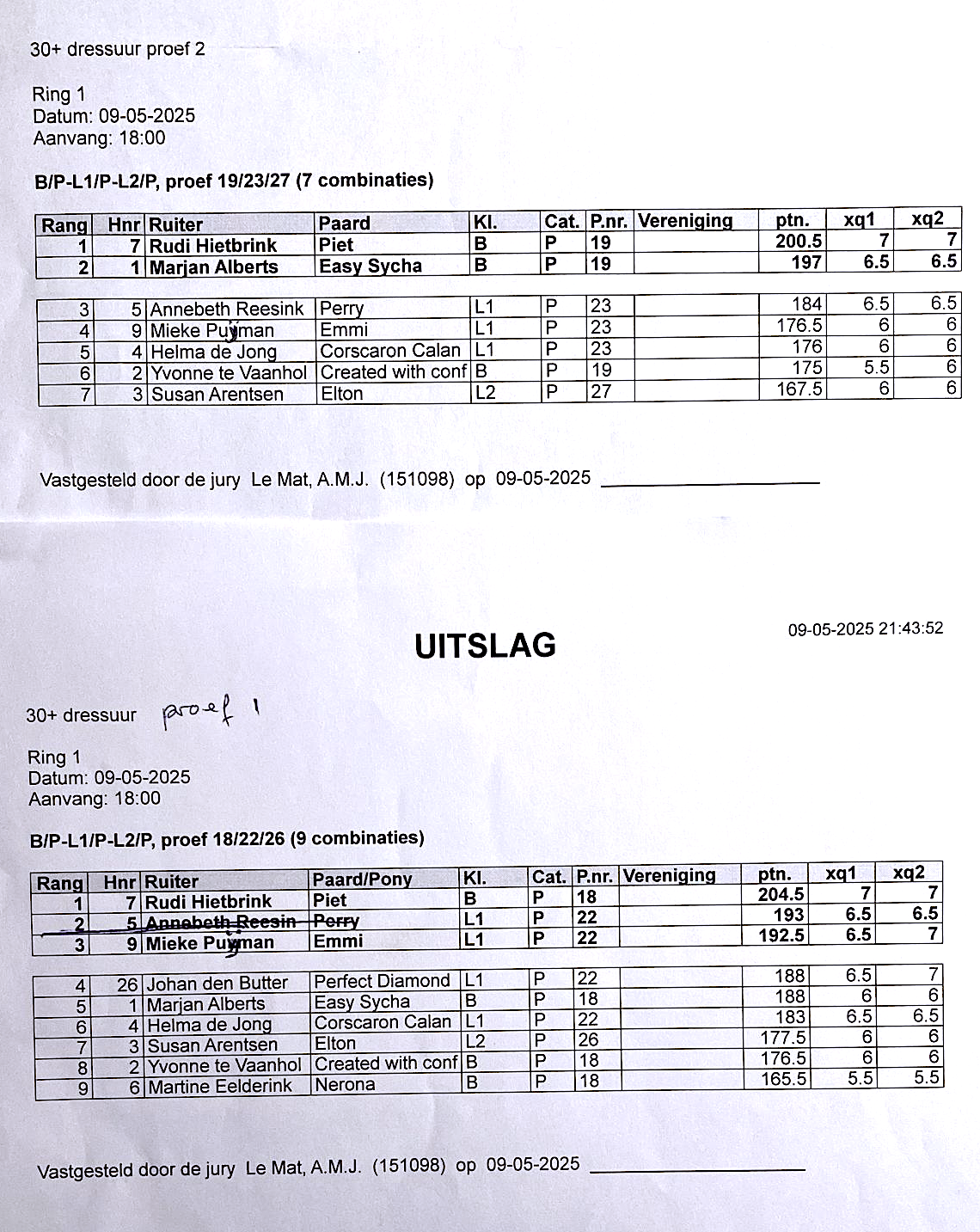 Er stond een bijzonder dressuurweekend op de agenda: op vrijdagavond 9 mei 30+ dressuur, op zaterdag 10 mei de Z1 t/m ZZ-Zwaar en de Subtop en achter in de middag verschenen de 4- en 6-tallen in de ring.