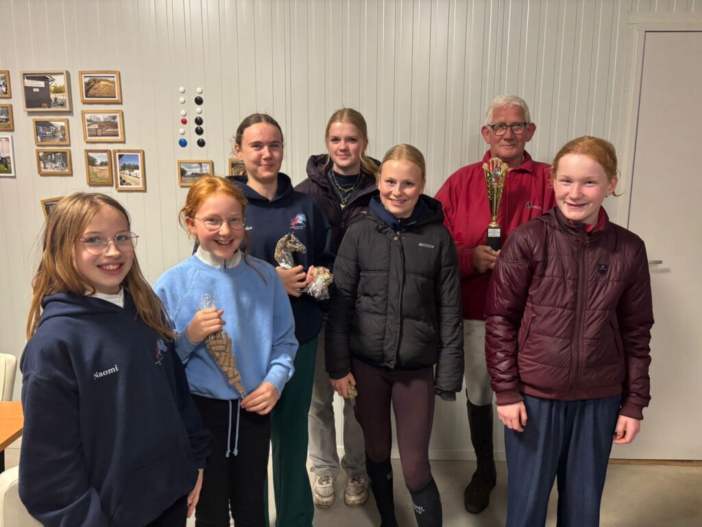 Maandagavond 26 mei stond in het teken van de onderlinge wedstrijd dressuur. 8 ponyleden en 5 paardenleden deden mee in de strijd om zichzelf clubkampioen te mogen noemen. Bij de bixie waren er twee ponyruiters in de prijzen. Naomi Eggink met haar pony Sterre en Imke Tragter met haar pony Spirit mochten de bekers in ontvangst nemen. Bij de Juniors ging Ditte Veenstra met haar pony Spikkel met de beker naar huis en bij de gevorderden was dit Femke Mengerink met haar pony Athene. Bij de paarden mocht Sophie Bolster met haar paard Point to Point de beker op haar naam zetten. 🏆