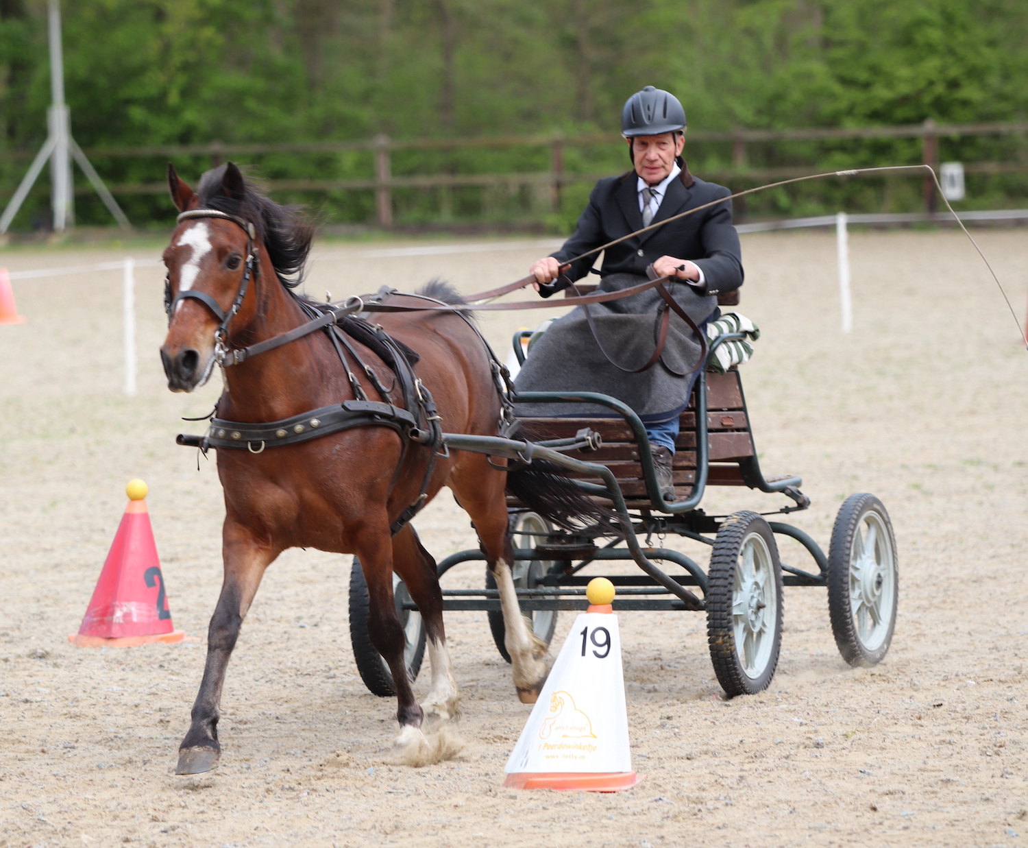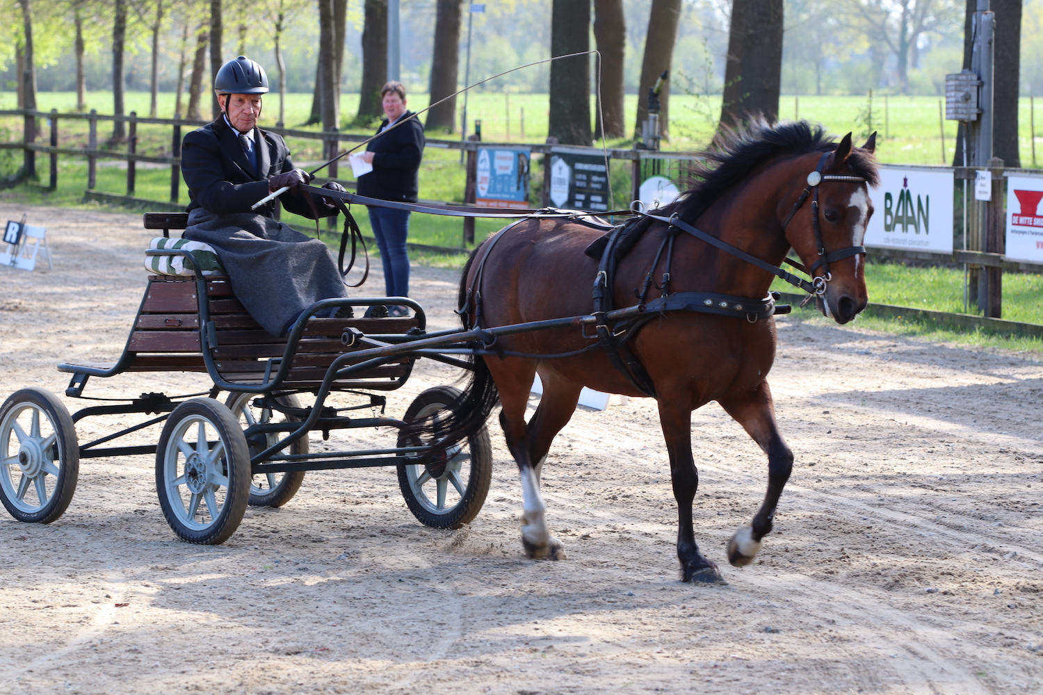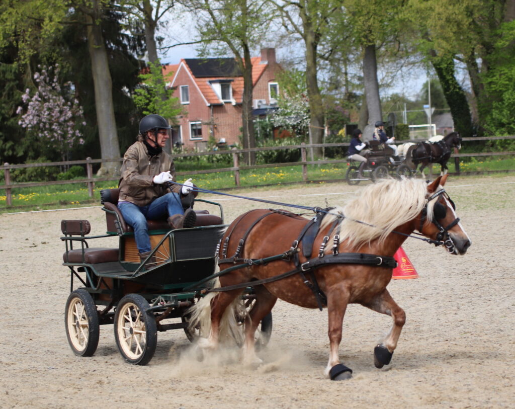 De deelnemers konden verkennen en daarna om half 2 van start. In de loop van de middag bleek dat het parcours goed te doen was, maar dat de tijd wat scherp stond. Toch waren twee deelnemers foutloos dus het bleef spannend met barrages. In het tweede parcours mochten zelfs drie menners een barrage rijden. Rond 3 uur was iedereen aan de beurt geweest en de ring werd snel opgeruimd.