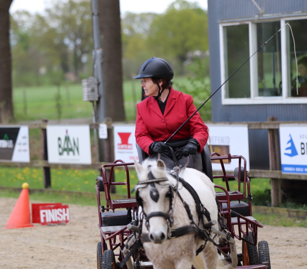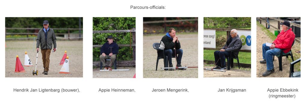 Na afloop van het dressuurprogramma werd snel de ring opgeruimd en het vaardigheidsparcours opgezet. In de ring, naast de kegels, de onmisbare vrijwilligers die zorgen voor een soepel verloop van de wedstrijd: