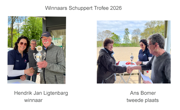 Daarna tijd voor de prijsuitreiking. De dressuur (1e proef) werd gewonnen door Hendrik Jan Ligtenbarg met Alexandro met maar liefst 212 punten. Bij de vaardigheid (1e parcours) mocht Selinde Biesheuvel (zij reed voor de gelegenheid met Macho en Guus, de sportpony’s van de fam. Lourens) het oranje lint in ontvangst nemen. Spanning wie nu de Schuppert Trofee had gewonnen, want zowel Hendrik Jan Ligtenbarg (1e in de dressuur, 3e in de vaardigheid) als Ans Bömer (2 maal een 2e plaats) hadden elk 4 plaatsingspunten. Het reglement bepaalt dat in dat geval de dressuurproef de doorslag geeft, dus de Trofee ging naar Hendrik Jan, met een eervolle tweede plaats voor Ans.